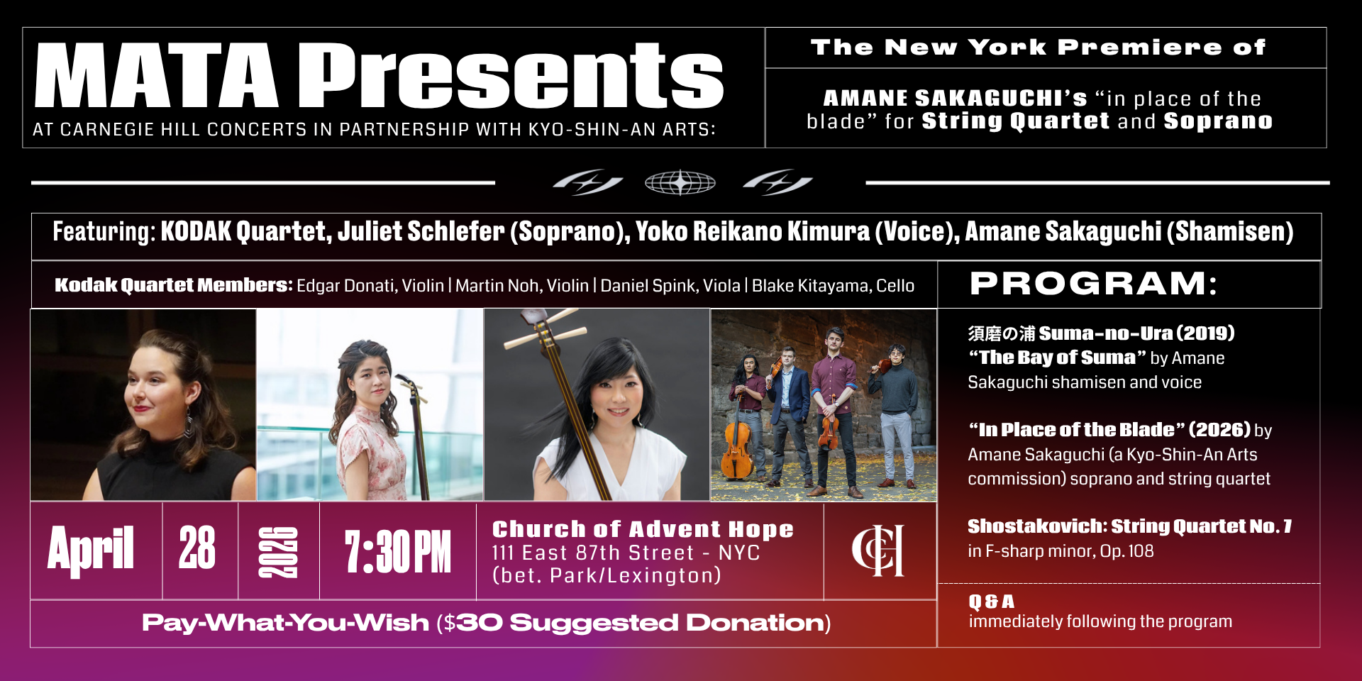 This performance is more than a concert; it is an exploration of how we carry legacy into the modern world. We invite you to stay after the program for a dedicated Q&A session with Amane Sakaguchi and the performers to dive deeper into the creative process.